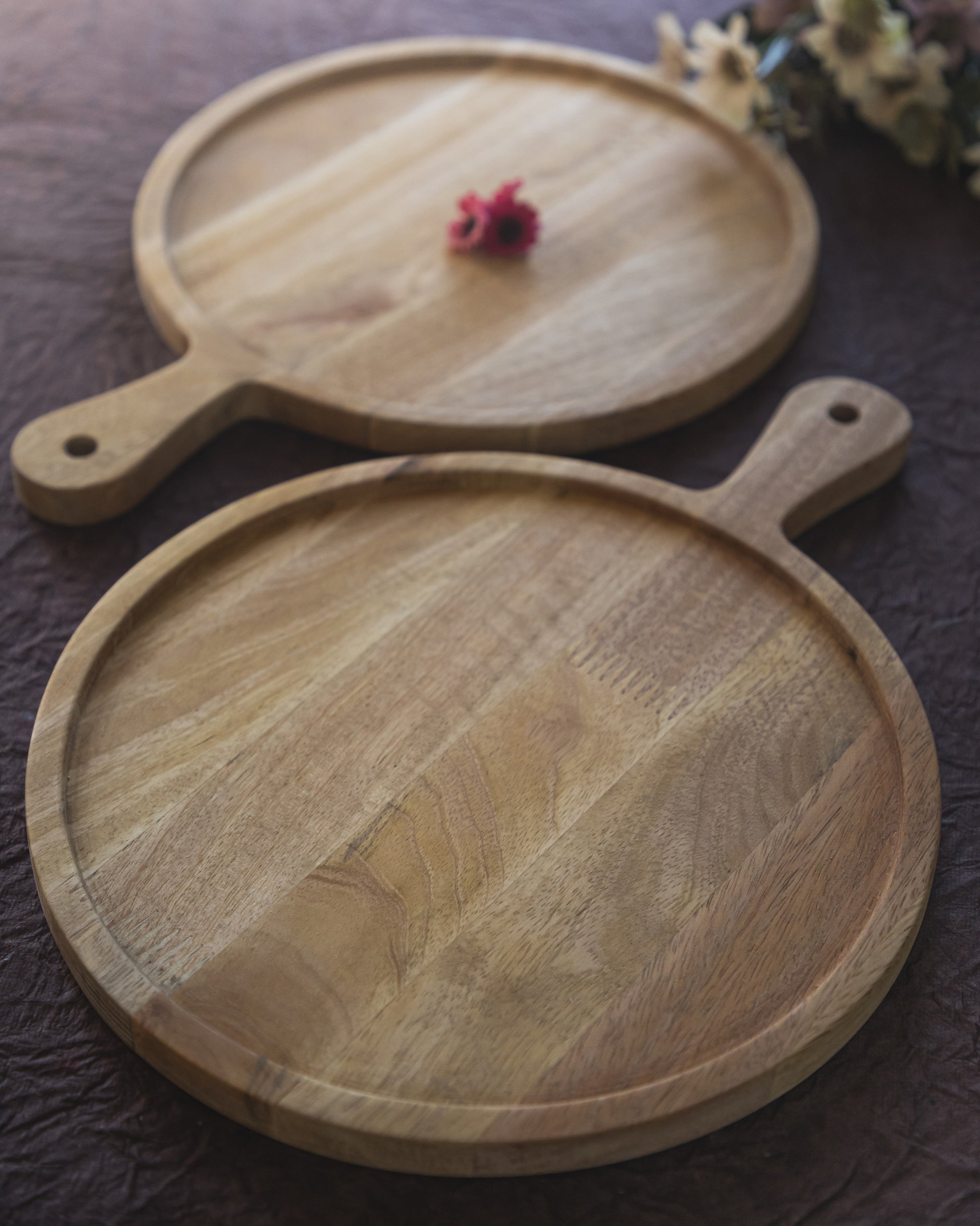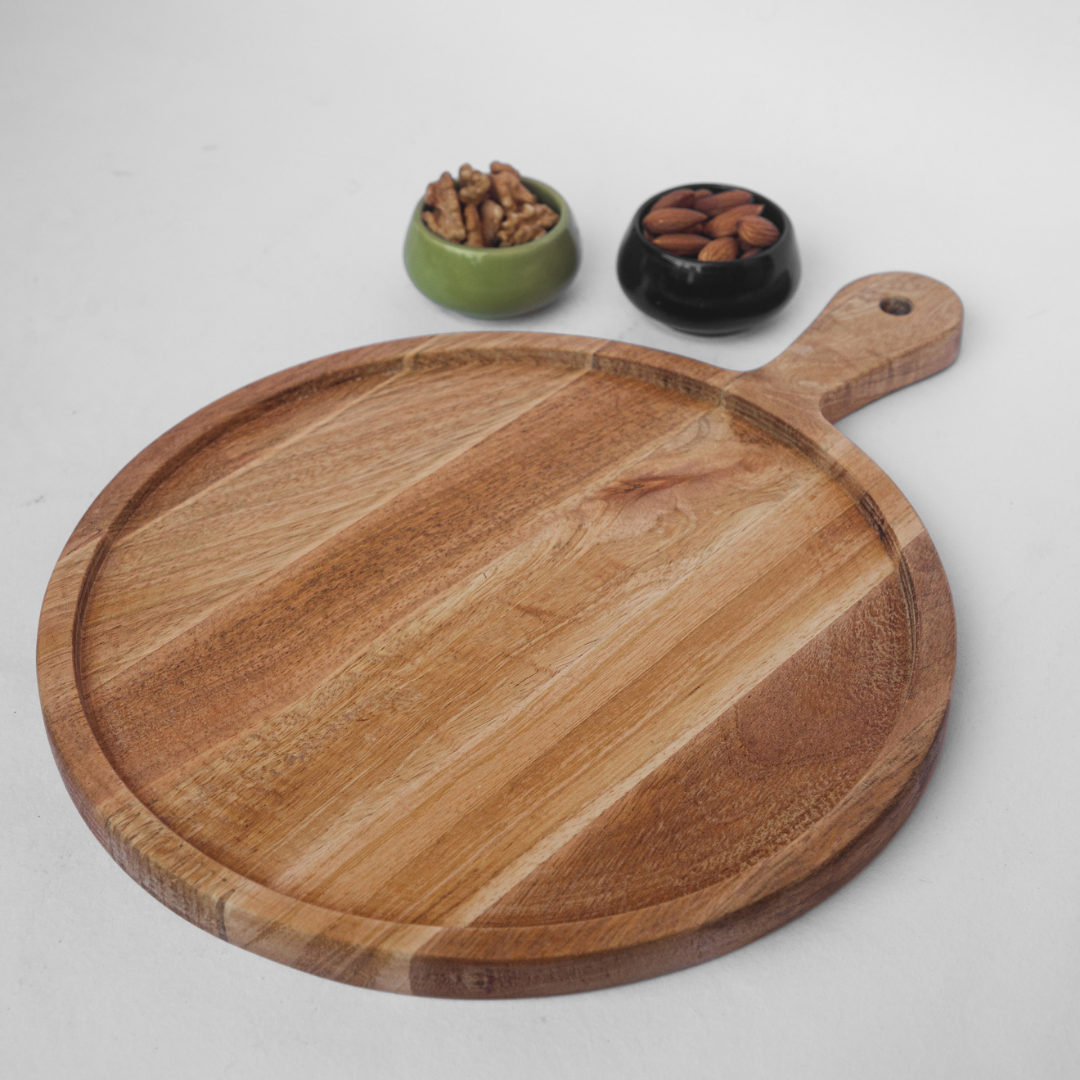 Introducing Our Aam collection: A range of wooden serveware made using sustainably sourced mango wood that is sure to bring a rich earthy vibe to any gathering. Our Aam Pizza Platter can be used to serve your hot oven baked pizzas. It also doubles down as a snack platter to serve your appetizers and cheese dishes.