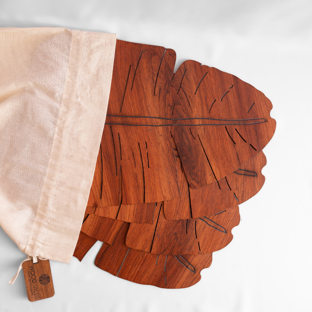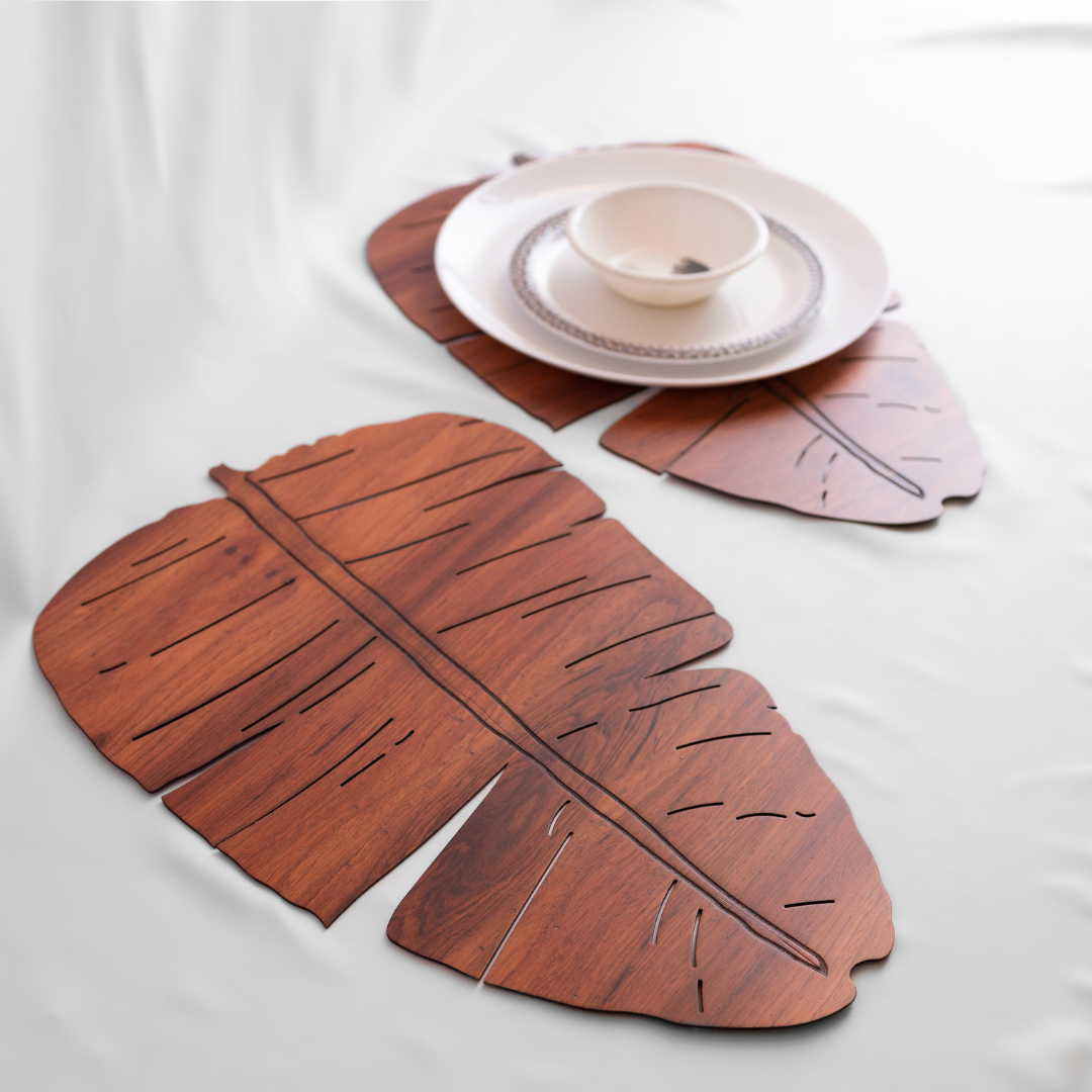 The Tablemat is made of High-Quality and durable specialized Padouk plywood. Designed to feel and flow like a banana leaf. The natural grains of the wood and its color add an element of natural beauty to the tablemat and as well as to your dining space, making it perfect for special occasions or everyday use. The banana leaf tablemats double up as beautiful table setters for a beautiful evening gathering or high tea occasions, or even for a lazy evening dinner as well.