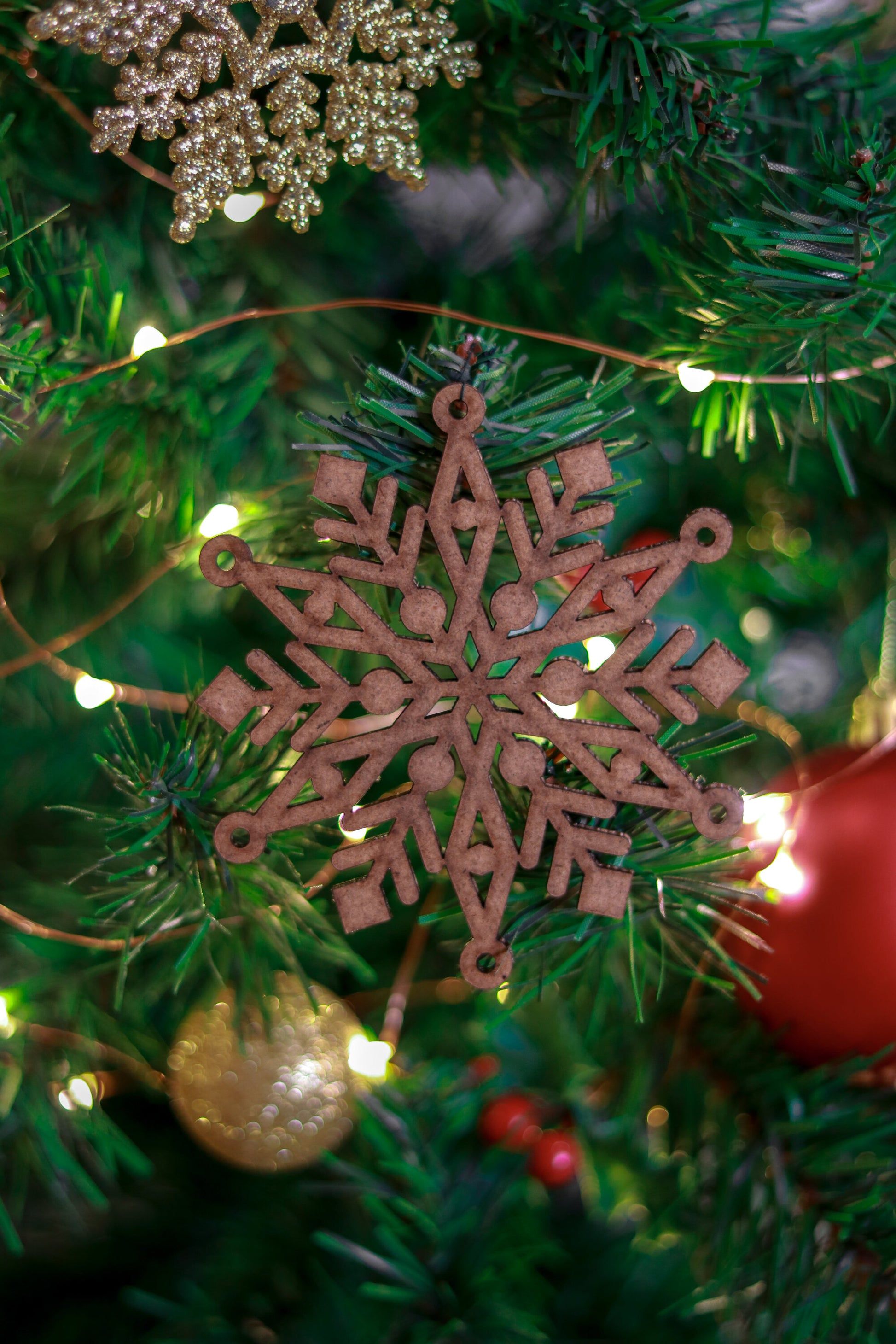 Ecofriendly Christmas tree ornaments manufactured from upcycled hardboard manufactured using wood pulp and paper waste. 100% biodegradable and sustainable. Has a very rustic wooden charm to it.