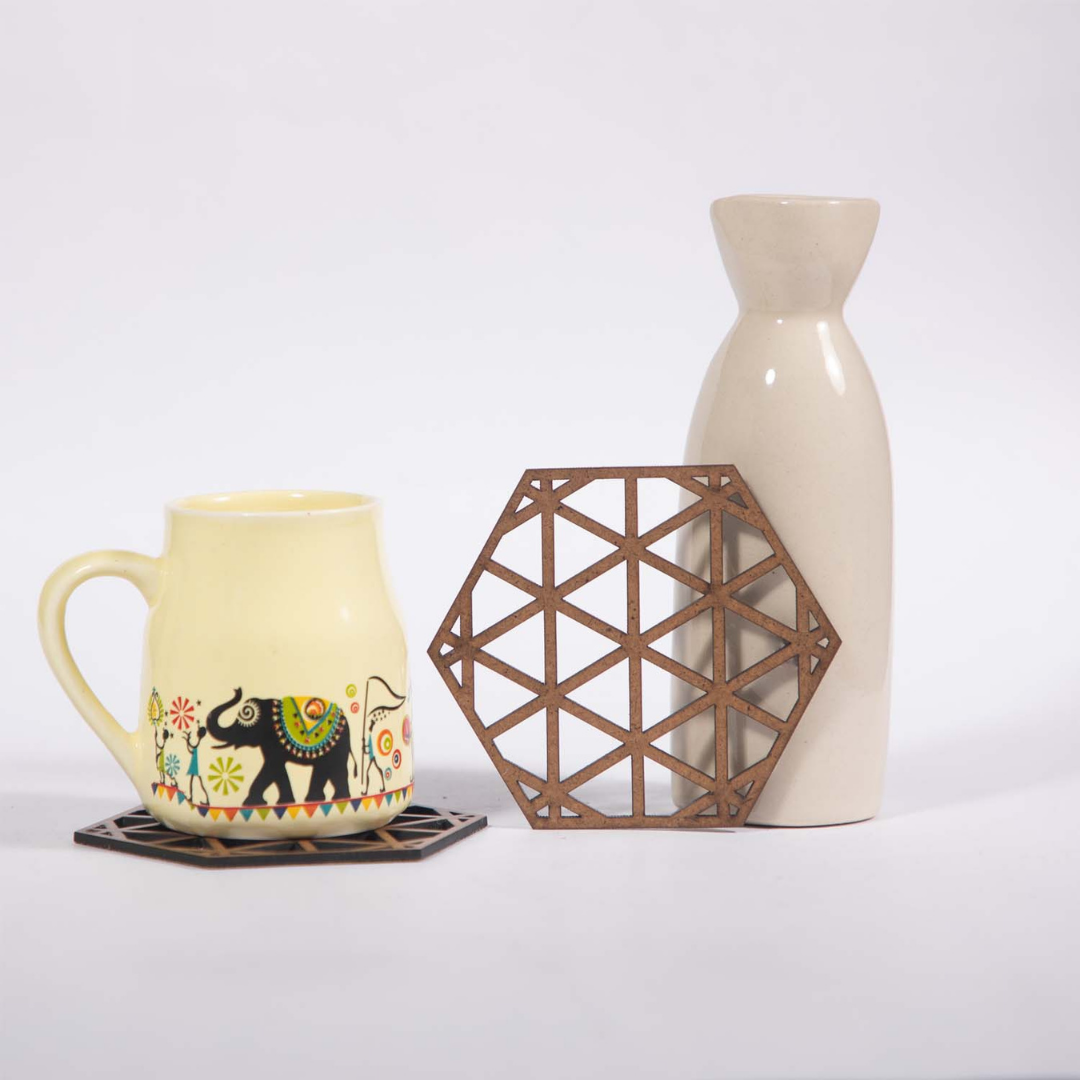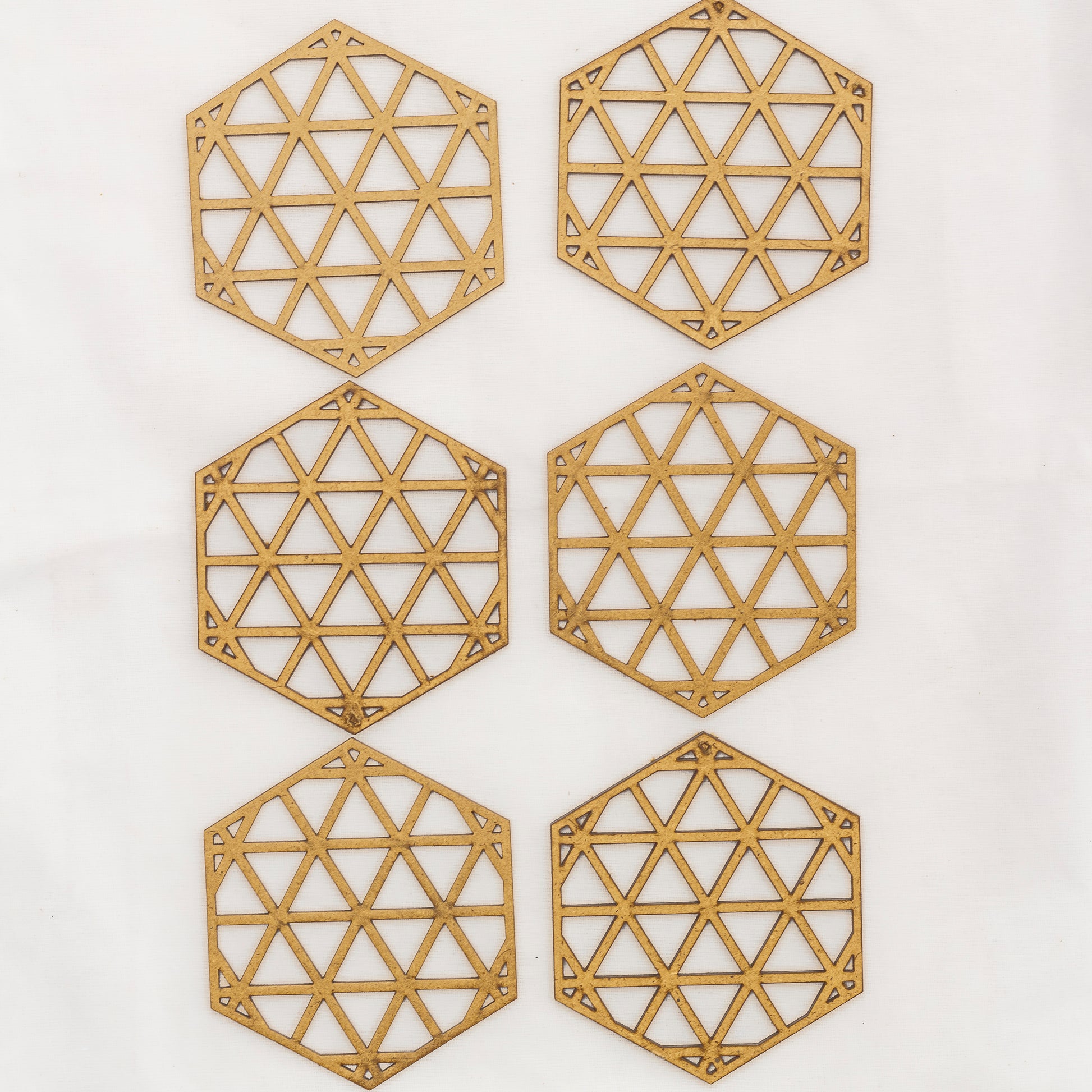 Hex Coaster (Set of 6) - Lotus Coaster (Set of 6) - Upcycled Rustic Hardboard Tea Coaster Set of 6 – Sustainable, Eco-Friendly, Water-Absorbent Coasters, No Adhesives, Reclaimed Wood Home Decor