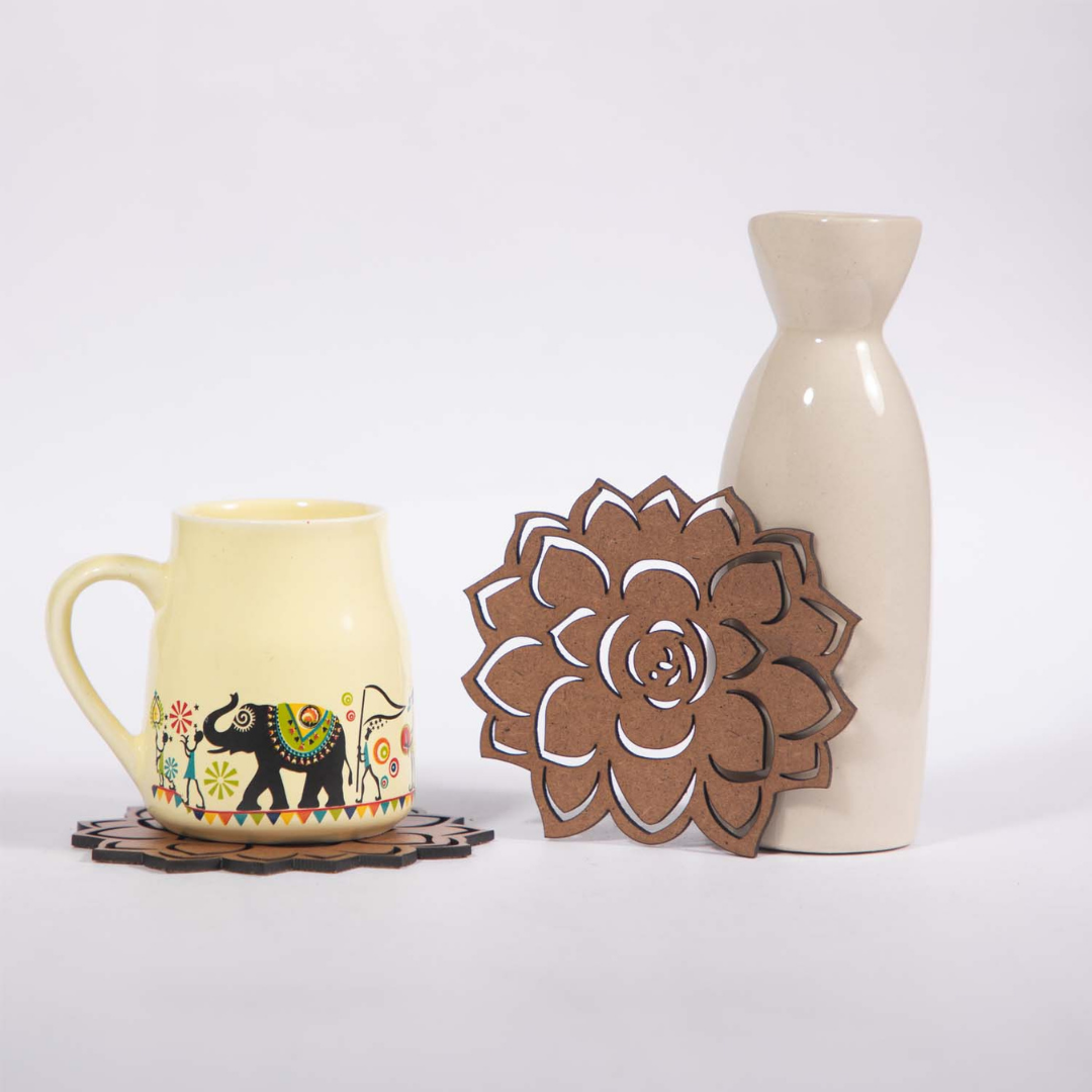 Lotus Coaster (Set of 6) - Upcycled Rustic Hardboard Tea Coaster Set of 6 – Sustainable, Eco-Friendly, Water-Absorbent Coasters, No Adhesives, Reclaimed Wood Home Decor