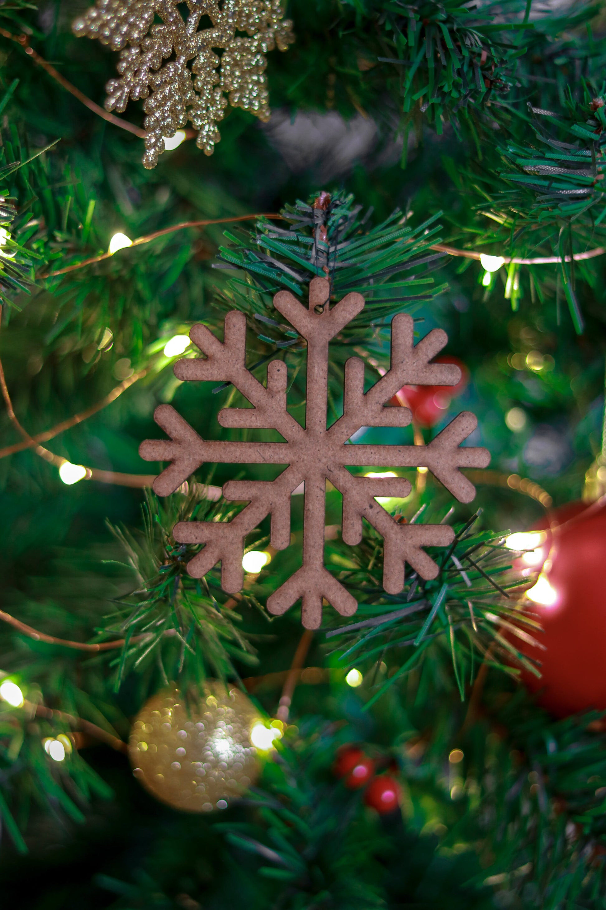 Ecofriendly Christmas tree ornaments manufactured from upcycled hardboard manufactured using wood pulp and paper waste. 100% biodegradable and sustainable. Has a very rustic wooden charm to it.