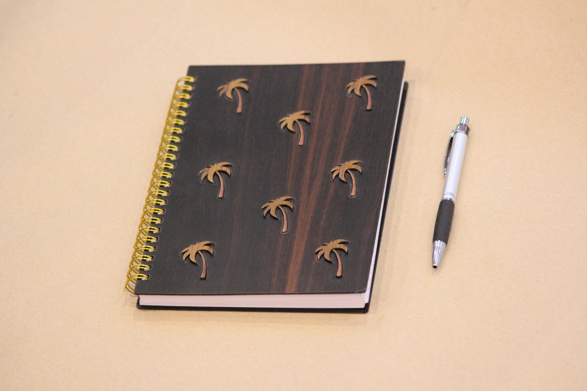 The Wooden Inlay Palm Tree A5 Notebook is a stunning fusion of art and functionality, crafted with precision using premium rosewood and teak. Each book features intricate palm tree inlay designs, showcasing the natural beauty and rich tones of the wood. The A5 size offers a compact yet elegant format, perfect for journaling, sketching, or gifting. With its smooth finish, durable construction, and luxurious aesthetic, this notebook is a timeless piece that combines craftsmanship with practicality, ideal for those who appreciate fine details and premium quality.