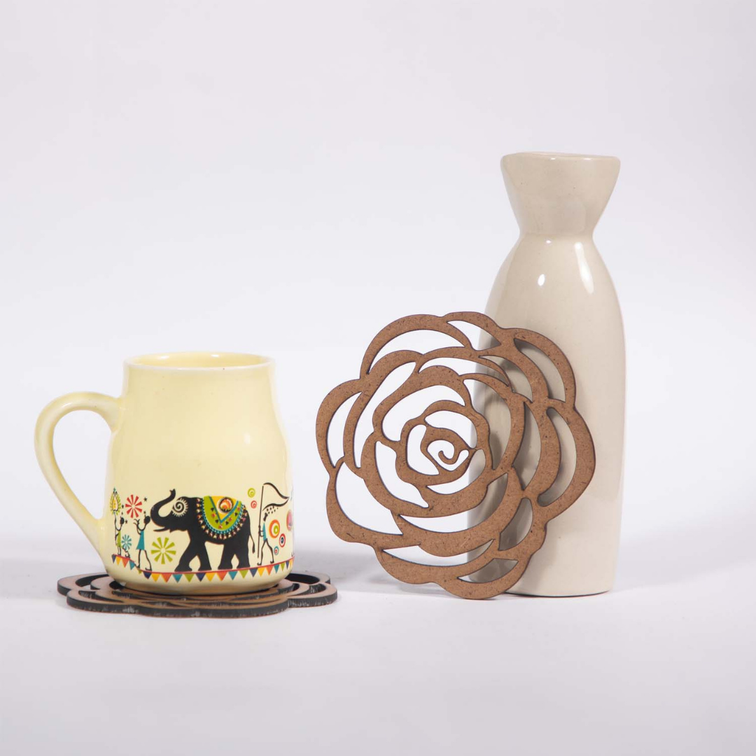 Rose Coaster (Set of 6) - Upcycled Rustic Hardboard Tea Coaster Set of 6 – Sustainable, Eco-Friendly, Water-Absorbent Coasters, No Adhesives, Reclaimed Wood Home Decor