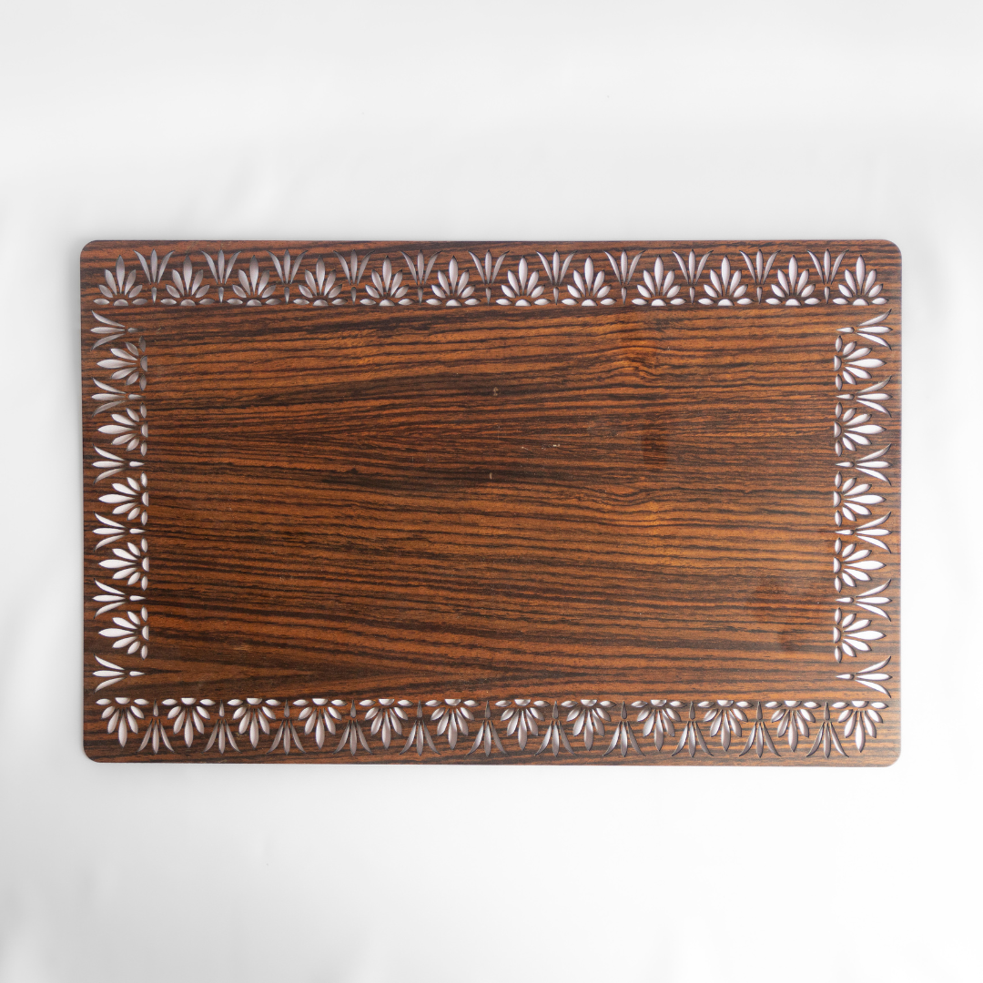 Wood Tales tablemats are made using a very unique material we call aircraft plywood made using natural rosewood veneers. Because of this special material, our tablemats are very lightweight for wooden tablemats yet sturdy. The table mats have very low maintenance with only wiping with wet cloth required.
