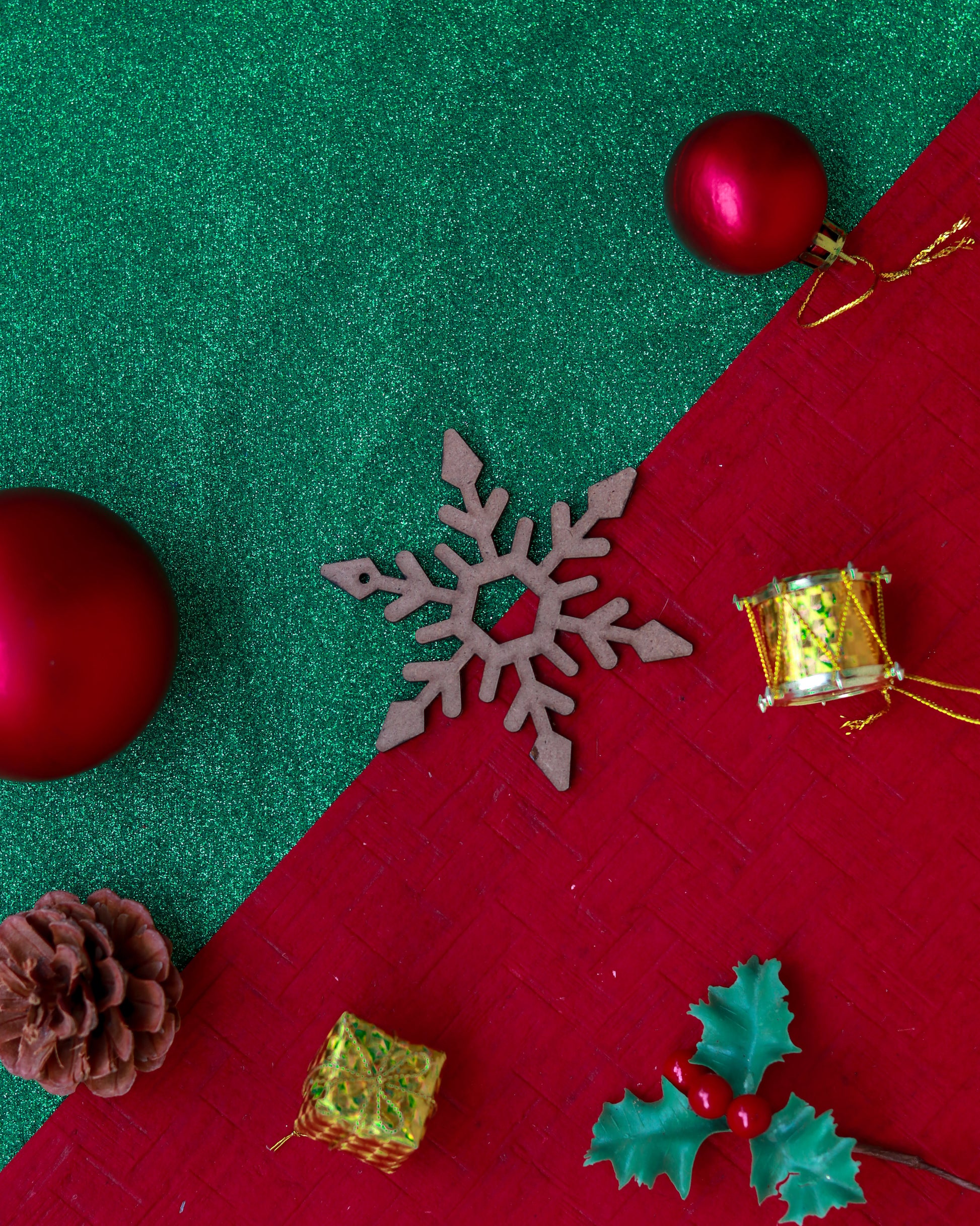 Ecofriendly Christmas tree ornaments manufactured from upcycled hardboard manufactured using wood pulp and paper waste. 100% biodegradable and sustainable. Has a very rustic wooden charm to it.