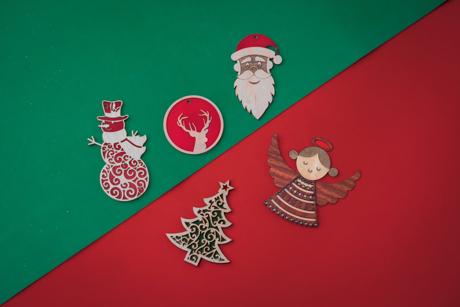 Ecofriendly Christmas tree ornaments manufactured from upcycled hardboard manufactured using wood pulp and paper waste. 100% biodegradable and sustainable. Has a very rustic wooden charm to it.
