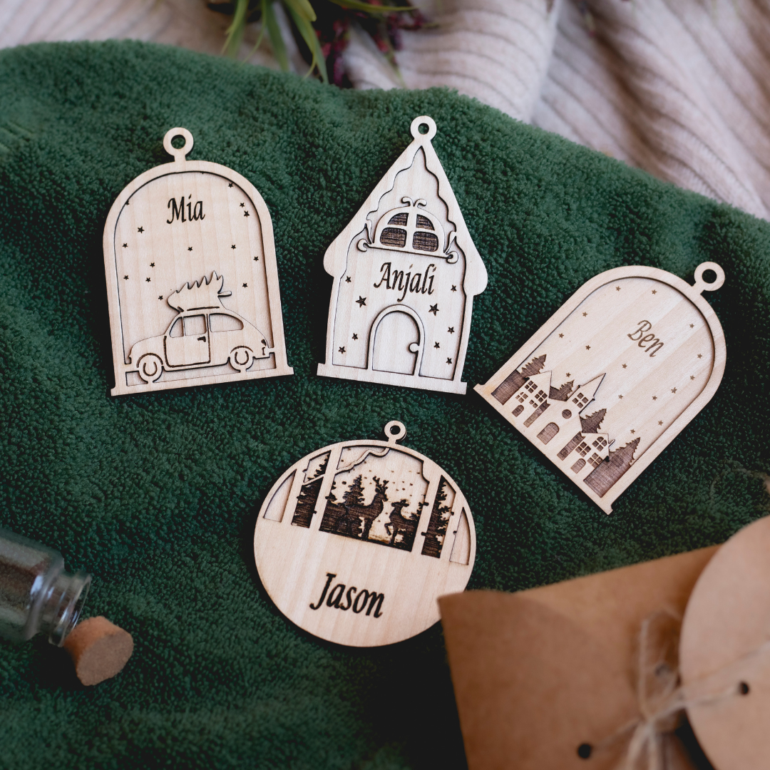 Foresty Christmas Trinkets with personalisation (set of 4)