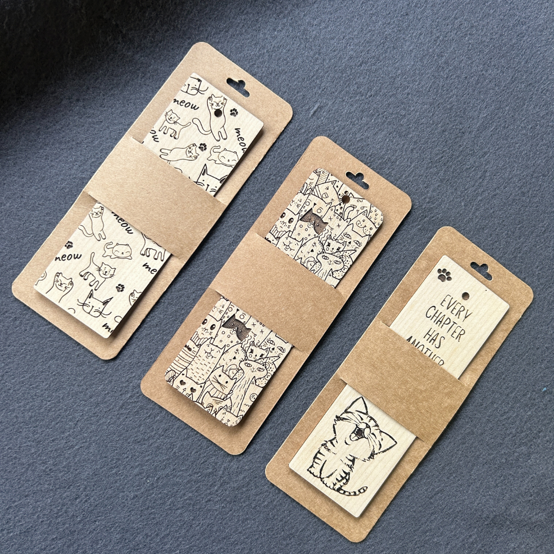 Introducing our charming White Wooden Cat-themed Bookmarks! Crafted with precision, these elegant bookmarks feature adorable cat illustrations that add a touch of whimsy to your reading experience. Made from high-quality wood, they are not only durable but also a delightful accessory for book lovers. Elevate your reading moments with these unique and stylish bookmarks – a perfect gift for feline enthusiasts or anyone who appreciates a touch of creativity in their reading routine.